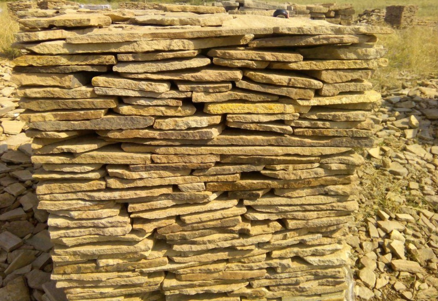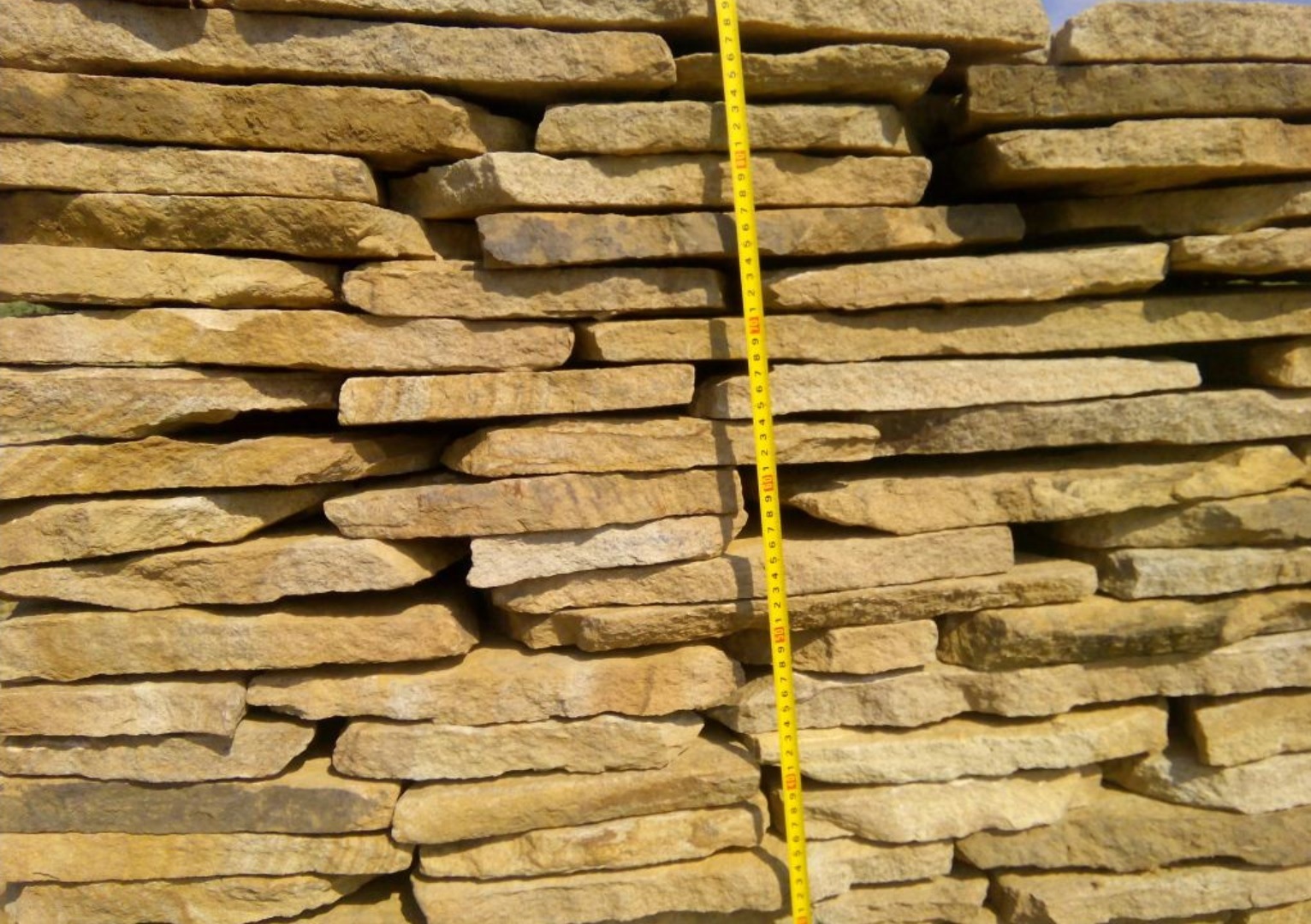 Kamenclub.ru: песчаник пластушка желтый с разводом под дерево (2 см) купить в Костроме - заказать природный камень по низким ценам оптом с доставкой от производителя - kamenclub.ru