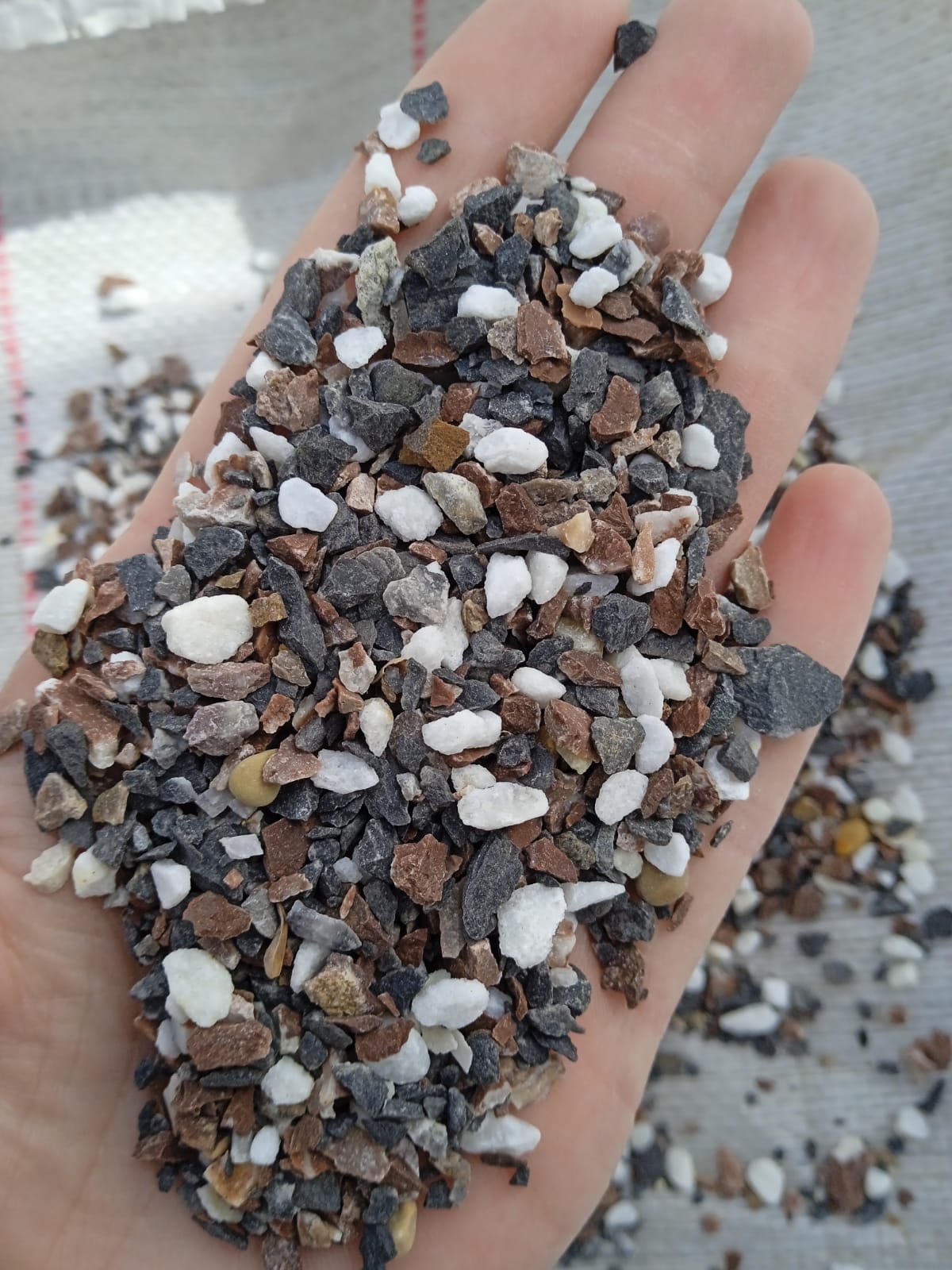 • Мраморная крошка (щебень галтованный микс:белый-черный-розовый-медовый) фр.5-10 мм.