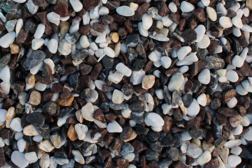 Kamenclub.ru: мраморная крошка (щебень галтованный микс:белый-черный-розовый-медовый) фр.10-20 мм. купить в Костроме - заказать природный камень по низким ценам оптом с доставкой от производителя - kamenclub.ru